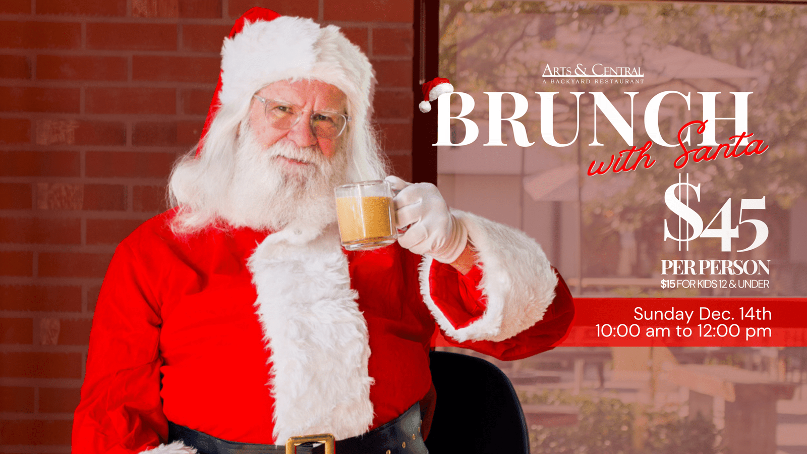 Come out and meet Santa at Arts & Central! He will be here, gifting us with his presence and regaling us all with wonderous stories from his trip from the North Pole! He will be at Arts & Central from 10AM-12PM, Sunday, December 14. Menu Options (Hot)  Buttermilk Pancakes Blueberry Pancakes Bacon Sausage Cheddar Scrambled ...
